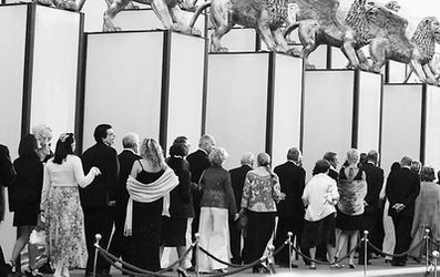 不知道從什么時候開始,歐洲電影節和罷工游行就像孿生兄弟一樣,形影不離。本屆威尼斯電影節也不能幸免。傍晚時分,在參展演員和導演下榻的威斯汀酒店外,一群統一著裝的人組成方隊圍在門口,他們每個人身上都掛著大紙牌,紙牌背面寫著:“威娜”危害身體健康,請禁止其生產。原來本屆電影節最大的贊助商之一就是世界知名美發廠商“威娜”。電影節開幕式開始,明星們走上紅地毯時,還不斷有游行隊伍在周圍逡巡,不過,盡管是游行,他們的態度卻很平和,沉默寡言,絲毫沒有影響電影節開幕式的進行。