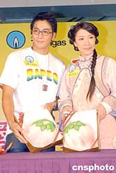 藝員吳卓羲、楊怡9月2日在香港出席長者安居服務協會與香港中華煤氣公司合辦“平安鐘愛心測試大行動”宣傳活動,吳卓羲、楊怡及煤氣公司技術員獲委任為“平安鐘愛心大使”,推廣一線通平安鐘服務。作者:鄧慶樂