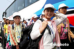 寧夏自治區隆德縣18歲的張歡(右二)對新生活充滿希望。3日,寧夏自治區固原市的530名勞務人員來福建企業務工。今年以來,福州市倉山區已安置了寧夏來福州市勞務人員12批470人。據了解,目前,倉山區缺少勞動力多達3000多人,一些企業因“工荒”面臨倒閉。福建開展“閩寧幫扶對口”解決招工難問題。作者:楊婀娜