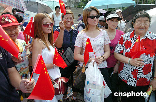 由五十位中國奧運金牌選手和香港當紅藝人聯袂奉獻的大匯演定于晚間七點正式開始,但不到下午三點,匯演地點大球場外已經有超過二百名香港市民冒酷暑、頂烈日在排隊“霸位”。他們個個“裝備齊全”,帶了水、遮陽傘和面包點心,說起來看奧運健兒表演,都有掩飾不住的喜悅與興奮之情。