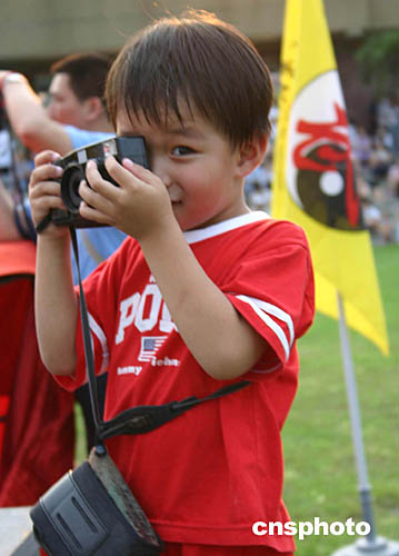 臺北小“攝影家”拍攝大陸武術表演。作者:黃少華