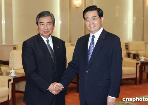 胡錦濤晤河野洋平 指中日面臨發展關系的重大課題