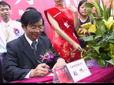 記者今日在簽售現場看到,盡管下著小雨,但眾多市民卻早早地來到簽售現場排起了長隊等待趙勇簽名售機。據了解,能得到趙勇的簽名等于能省掉幾百元上千元的購機費。當趙勇出現在現場時,全場沸騰了,趙勇像明星般被工作人員和市民簇擁著走上了簽售臺,幾十名市民有幸得到了趙勇的簽名。