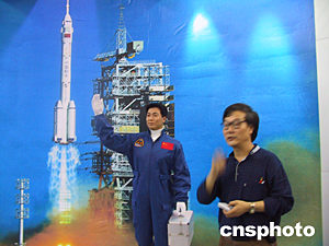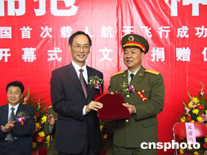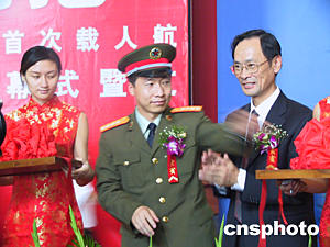 由中國人民解放軍總裝備部、文化部等共同主辦的“擁抱‘神舟’——紀念中國首次載人航天飛行成功一周年展覽”二十九日在國家博物館開幕。展覽中傳遞的信息稱,根據計劃,“神舟”六號載人飛船將在明年發射升空,目前,中國航天人正信心百倍地投入“神舟”六號的研制工作中。中新社記者 孫自法 攝