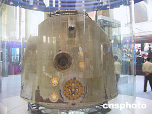 “神舟”五號飛船返回艙等十六件套在中國首次載人航天飛行中使用過的物品作為珍貴文物,二十九日亮相“擁抱‘神舟’”大型展覽并正式捐贈給國家博物館永久珍藏。