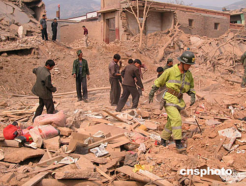 據初步了解,爆炸原因為一當地村民私炒炸藥,操作不當引起。現場被炸出一處深一點五米、寬六米的大坑。院里的十四間房屋被炸為廢墟,附近還有許多房屋的玻璃嚴重受損。