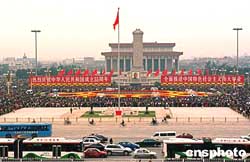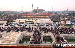 十月二日的國慶節(jié)假日,天安門廣場向北京市民來賓開放,數(shù)十萬游人,紛至沓來,從各個通道擁進(jìn)廣場觀光,形成節(jié)日人山人海的景觀。作者:鄒憲