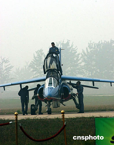 由天天氣原因,七日下午在北京南苑機場舉行的法國特技飛行表演被迫取消,中國跳傘大隊的表演也一并取消。秋高氣爽原本是北京秋天的特色,但今年國慶節后幾天連日霧氣朦朦,據說南苑機場今天的能見度只有一點五公里左右。今天到現場看表演的觀眾據悉約有五萬人。中新社記者:王麗南