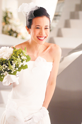 中新網10月8日電 據香港大公報報道,莫文蔚為一潔白牙貼擔任代言人,之前拍攝一輯全新廣告,她更破天荒在熒幕上首披嫁衣。