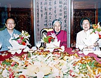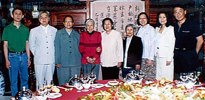 偉人們為了事業,付出畢生的一切,并沒有給親屬后人留下什么物質財富,甚至連所有家庭都應有的溫情回憶,也極其有限。歷史就是歷史,無法改變,更不能抹去;當事者的回顧總是帶著濃重的個人色彩和不可避免的片面性;旁觀者的記憶更隨著境遇變遷因人而易。眼前,這一切已是“而今邁步從頭越”。三代人的歡宴進行了兩個多小時,錄像機攝下了充滿歡聲笑語的一幕幕場景。媽媽和姨媽興趣盎然,偶爾交頭議論,不時插上幾句,始終滿意地笑著。銀絲皓首的光美奶奶沒有怎么講話,慈祥而超然地看著孩子們,孱弱清癯的面龐上泛起紅暈,顯得那么幸福,那么美麗!