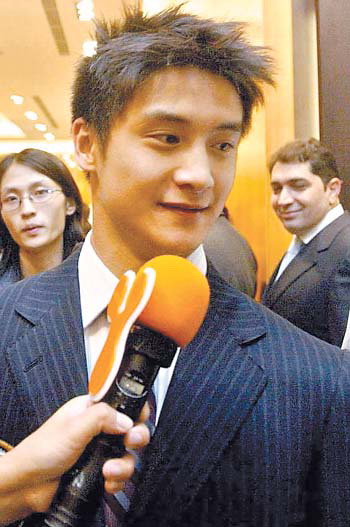 可能是因?yàn)殚L(zhǎng)途飛行的緣故,當(dāng)晚不停周旋于各路名流之間的田亮,看起來(lái)有些力不從心。當(dāng)記者問(wèn)是參加運(yùn)動(dòng)訓(xùn)練消耗體力大還是出席各種社交活動(dòng)消耗大時(shí),他很圓滑地回答道:“出席活動(dòng)很耗費(fèi)精力,不過(guò)論體力消耗當(dāng)然還是運(yùn)動(dòng)訓(xùn)練大。雖然各種社交活動(dòng)給我枯燥的跳水生涯增添了色彩,但我只把它當(dāng)作暫時(shí)的調(diào)整,春節(jié)后會(huì)投入訓(xùn)練中。”當(dāng)被問(wèn)到與英皇簽約進(jìn)入娛樂(lè)圈的事情時(shí),田亮坦率地表示正在考慮中:“我愿意去試一試,嘗試一下與過(guò)去完全不同的人生滋味。不過(guò)目前只想輕松一下,簽約的問(wèn)題慢慢由經(jīng)紀(jì)人洽談。”