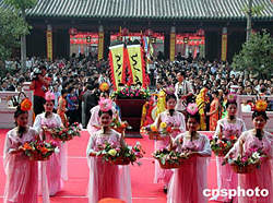 10月14日上午,第九屆中國孔廟保護協會年會、孔子文化學術研討會暨廣東德慶旅游文化節開幕。來自內地三十多個省市及香港、越南等地的孔廟代表、研究孔子文化的專家學者、孔氏宗親一千三百多人云集廣東德慶孔廟。作者:黃耀輝