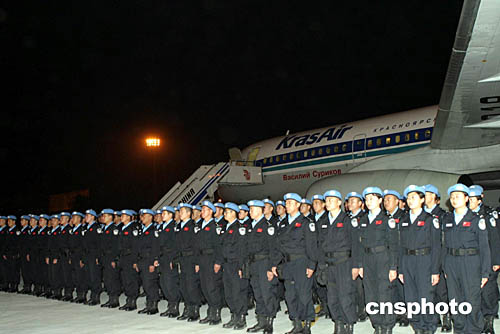 九十五名中國維和警察防暴隊成員十七日乘聯合國專機從北京首都國際機場出發,前往海地執行聯合國維和任務。這是中國政府第一次向海地任務區派遣維和警察防暴隊。這支防暴隊隊員平均年齡二十八歲,其中有十三名女警,來自北京、天津等四個直轄市的公安防暴總隊和公安邊防部隊。防暴隊員從今年六月以來,經過了四個多月的業務訓練和外語培訓。