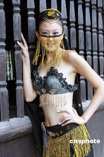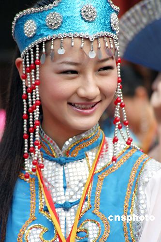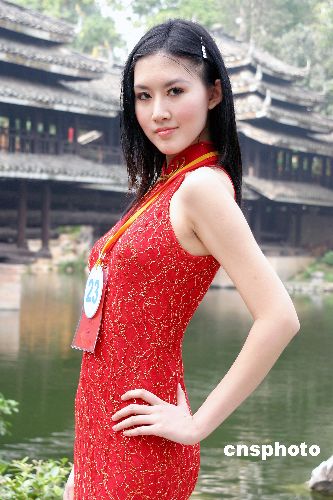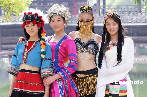 2004年10月17日,中國模特之星全國20個分賽區前三名的60名選手在南寧民族文物苑進行民族裝外景拍攝。駱文剛 攝