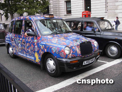 倫敦街頭如今也出現了越來越多的五顏六色、花里胡哨的出租車,煞是搶眼。但據說開這類出租車的部分司機并未受過專業訓練。余瑞冬 攝