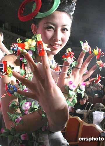十月二十日,中國國際美容時尚周美甲冠軍大賽在北京展覽館劇場舉行,造型獨(dú)特的立體美甲令人眼花繚亂。作者:廖文靜