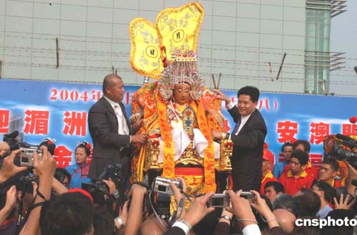 隨著媽祖金身的到來,以“媽祖金身巡安澳門盛典祈福”為主題的第二屆澳門媽祖文化旅游節也揭開了序幕。文化節開幕式將于明天上午舉行,隨后的幾天里,將舉行湄洲媽祖金身大巡游、閩澳旅游聯合促銷、天津民間藝術剪紙──媽祖故事展覽、媽祖緣.泉澳情書畫創作展、福建美食節和福建民俗文藝表演等活動。