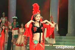 “斯達舒杯”第十屆中國模特之星大賽決賽第一場比賽于十月二十一日晚八點在廣西南寧拉開帷幕,二十二日晚進行了第二場比賽,產生了三十名選手進入二十四日晚舉行的總決賽。本次大賽陣容非常地強大,從今年三月份起星賽開始啟動,一共有五萬多名佳麗報名參賽,經過二十二個分賽區初賽、復賽、決賽的層層選拔之后,一共產生了六十名選手參加在南寧舉行的決賽。圖為參賽選手展示少數民族服飾。作者:蔣雪林