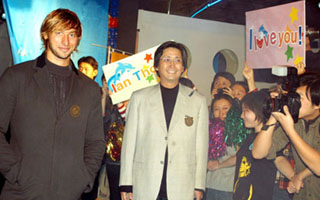 據主辦方介紹,9月以來,索普為Sony產品拍攝的電視廣告和平面廣告在上海、北京、廣州火熱播映。索普此次應索尼公司的邀請來到中國,將作為Sony產品代言人參加一系列活動。雖然索普并非第一次來華,而且許多媒體和Fans已經有一定的心理準備,但是當索普亮相的瞬間,還是引來陣陣尖叫和騷動,成為名副其實的“菲林殺手”。