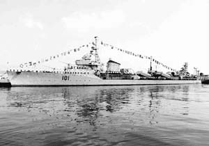 1954年10月25日,中國人民海軍第一支驅逐艦部隊正式成立了!次日,中蘇雙方舉行交接簽字和命名授旗儀式。海軍參謀長周希漢宣布了中央軍委命令,將接收蘇聯的“果敢”號和“神速”號驅逐艦分別命名為中國人民解放軍海軍“鞍山”號、“撫順”號驅逐艦。隨后,第二批驅逐艦也抵達青島并移交我軍。至此,人民海軍第一代驅逐艦“四大金剛”全部就位,中國海軍開始踏上了現代化建設的征程。