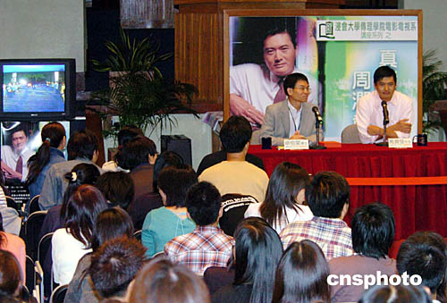 平素學(xué)術(shù)氣氛濃厚的香港浸會大學(xué)校園,今日卻滲透出一種“星味”來。原來,周潤發(fā)出現(xiàn)校園,與大學(xué)生真情對話。難得一睹巨星風(fēng)采,一眾接受高等教育的大學(xué)生也瘋狂起來,原本嚴(yán)肅論電影的座談會,變成了周潤發(fā)影迷聚會。