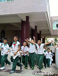 “不害怕,有些累!蔽迥昙壍那f胤同學(xué)對記者說起參加防空演習(xí)的感受,他說平時(shí)學(xué)校體育課多是慢跑,今天的快跑讓他有些喘不過氣。小家伙表示今后要多鍛煉身體。學(xué)校的梁老師告訴記者,“作為校本科程,學(xué)校近年加強(qiáng)對小學(xué)生軍事知識講座,包括國防科普、空襲知識和伊拉克戰(zhàn)爭等。”