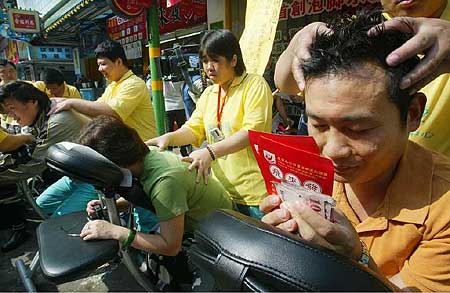許多投注站都貼出“第100位樂透億萬富翁”、“頭獎獎金上看6.5億元”的促銷海報,還有投注站推出“買彩券送免費按摩”的促銷活動。