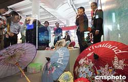 十一月四日,在廣西南寧舉行的首屆中國—東盟博覽會上,參觀者為泰國展臺前的民間藝術“傘繪”所吸引。展示本國、本民族的民間藝術成為本次展會的一大亮點。作者:武仲林