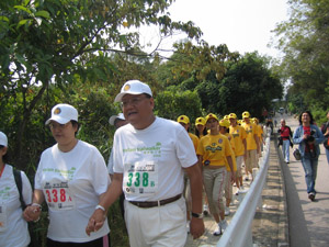 中新網11月5日電 由香港樂施會舉辦的“樂施毅行者2004”活動于本月5日至7日在香港舉行。該活動特邀鳳凰衛視著名主持人劉海若小姐主持了開步禮。她在開步禮上激勵三千九百名參加者在路途上要與隊友互相扶持,鼓勵他們勇往直前,共同克服一百公里路途上出現的種種困難,挑戰個人極限。