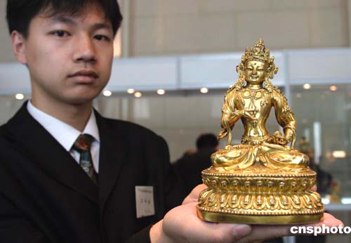 “尊崇之美——佛像藝術專場拍賣會”十一月六日在北京舉行。由中國嘉德拍賣公司舉槌的這場佛像拍賣會是北京首次舉辦的大規模佛像拍賣會,共成交一千二百余萬元人民幣,多尊珍貴佛像以高出底價數十萬元的價格成交。作者:張煒
