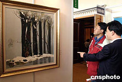 在十一月七日舉行的嘉德二零零四秋季拍賣會上,著名畫家吳冠中創作于二十世紀七十年代的油畫作品《北京雪》以三百六十三萬元人民幣的高價成交,成為此次嘉德中國油畫專場拍賣會的最高成交價作品。吳冠中的作品具有很高的藝術欣賞和收藏價值,并多次創造拍賣紀錄。圖為《北京雪》在預展時備受矚目。中新社記者:張煒
