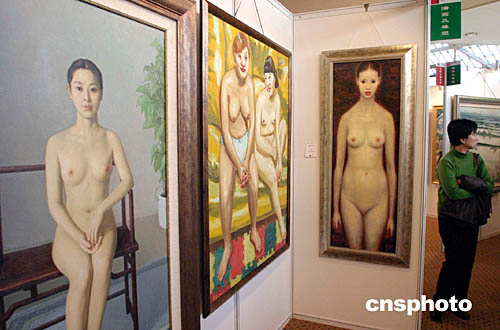 十一月七日,中國嘉德二零零四秋季拍賣會舉行中國油畫及雕塑專場拍賣,創下總成交三千七百余萬元人民幣的單場中國油畫拍賣成交紀錄。中國油畫的收藏與拍賣正在升溫,拍賣成交價格逐年攀升,其投資價值受到越來越多投資者的重視。圖為拍賣預展會上的中國油畫作品。中新社記者:張煒