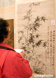 清代鄭燮(號板橋)名作《竹石蘭蕙圖》十一月七日在北京舉行的嘉德秋季拍賣會上,以五百三十九萬元人民幣的高價被成功拍賣。當天舉行的嘉德中國古代書畫專場拍賣會總成交額突破一億元人民幣。圖為拍賣預展時觀眾欣賞《竹石蘭蕙圖》。中新社記者:張煒