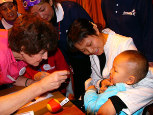 由來自美國(guó)、加拿大、澳大利亞、香港等5個(gè)國(guó)家和地區(qū)的40余名醫(yī)組成的這支“微笑行動(dòng)”志愿者隊(duì)伍,在本次“微笑行動(dòng)”中不僅要給200名患兒帶來福音,還將加強(qiáng)與中國(guó)在此領(lǐng)域的國(guó)際技術(shù)交流和合作,促使更多國(guó)內(nèi)醫(yī)院自行開展這類手術(shù)。此次活動(dòng)的合作醫(yī)院湖北省婦幼保健醫(yī)院院長(zhǎng)胡祖斌表示,國(guó)際微笑活動(dòng)在湖北的治療行動(dòng)是一個(gè)非常好的開始,今后該院將持續(xù)這類治療,并希望得到社會(huì)各界的資助,幫助貧困家庭的患兒。