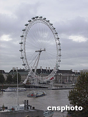 高135米的摩天大轉盤“倫敦眼”,是目前世界最大的摩天輪。這座千禧年在倫敦泰晤士河畔矗立起來的目前世界最大摩天輪,每半個小時旋轉一周。游客可乘坐它在城市中心的上空,俯瞰方圓25英里范圍內的倫敦美景。余瑞冬攝