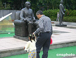 11月12日是孫中山先生誕辰138周年,臺北舉辦一系列活動予以紀念。圖為一位臺灣民眾帶著孫女在孫中山紀念館前。中新社記者:董會峰