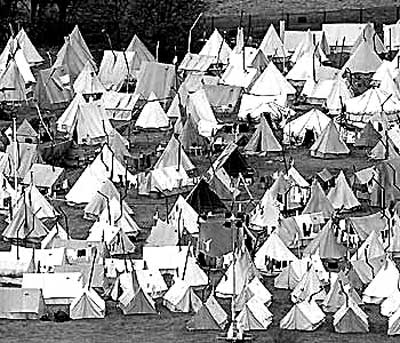 在圖片中可以看到,英國赫特福德郡田野里搭滿了上百頂大小不同、形狀各異的帳篷,其間的繩索上還掛著花花綠綠的如旗幟般飄揚的衣服,放眼望去宛然是個生機勃勃的村落。與此同時,哈利·波特劇組正在赫特福德附近的維斯登制片廠(Leavesden Studios)忙得不亦樂乎。這塊占地100英畝的巨大露天場地和制片廠也是前幾部哈利·波特影片以及007系列之《黃金眼》(Goldeneye)的主要片場。