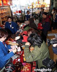 11月19日,數百名北京市民在菜百商場排隊購買雞年賀歲金條。盡管黃金價格連年看漲,賀歲金條的價格由三年前的99元/克漲至今年的125元/克,仍未擋住北京市民的購買熱情。中新社記者:史利