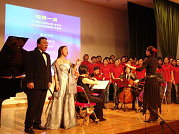 藝術專業留學生們獻上了主題為“人間自有真情在”的精彩文藝節目。晚會分為“追思”、“歸來”和“展望”三個單元。大合唱《深情一望》,寄托了對逝者的無限哀思,引人垂淚。音樂劇《歸來》和一曲“說句心里話,使館就是咱的家……”贊揚了使館工作人員忘我救助傷員的動人事跡。女生獨唱《親吻祖國》飽含對祖國的深情厚愛和對美好未來的無限憧憬,將整個晚會推向高潮。