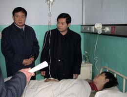 孫華山向傷員表示慰問,并詢問他們恢復情況。他告訴傷員,請你們安心養病,爭取早日恢復好身體。
