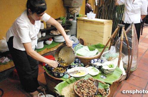 越南人心靈手巧,“好食館”廚師的刀功博得滿(mǎn)堂喝彩,切得纖細(xì)的果蔬,紅紅綠綠滿(mǎn)碟涼拌,煞是好看。各種膚色游客常常在品嘗美食之前,先拍照一番才舍得動(dòng)筷。