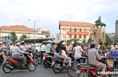 越南胡志明市擁有三百萬輛摩托車,一到下班,摩托車大軍擁塞街頭。作者:邢健