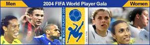 國際足聯公布的2004年世界足球先生的最終3名候選人是:法國的亨利(英超阿森納俱樂部)、巴西的羅納爾迪尼奧(西班牙巴塞羅那俱樂部)和烏克蘭的舍甫琴科(意大利AC米蘭俱樂部)。