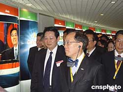 十二月一日,香港特別行政區政務司司長曾蔭權率領考察團一行一百二十多人訪問廣東省汕頭市。汕頭市長黃志光(左一)和曾蔭權(右一)在參觀汕頭信用建設館。作者:李怡青