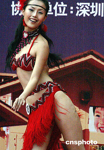 參加第十七屆世界模特小姐大賽中國賽區(qū)總決賽的選手,十月五日在深圳舉行大賽巡游時裝秀,圖為參賽佳麗表演熱情奔放的拉丁舞。中新社記者:錢興強(qiáng)