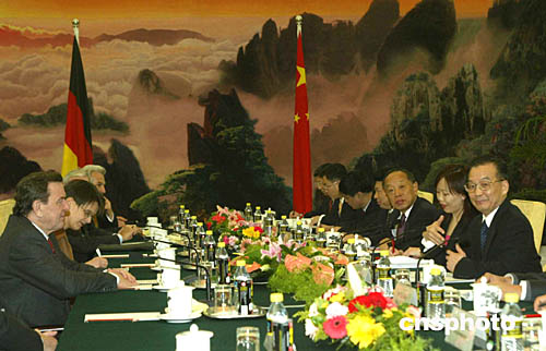 組圖:溫家寶總理與德國總理施羅德會談