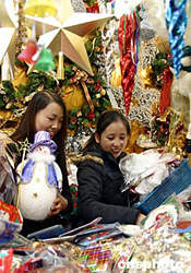 圣誕節日益臨近,形形色色的圣誕飾品在上海市場熱銷。作者:潘索菲