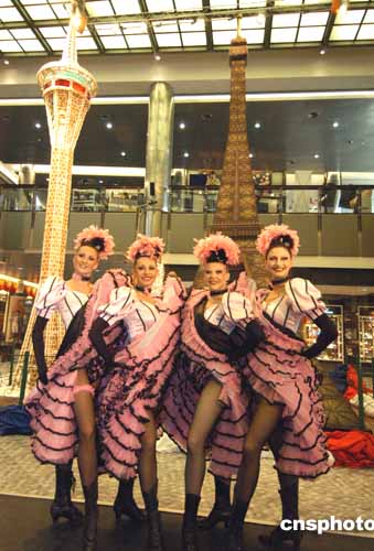 澳門旅游塔為慶祝“法國文化年”及澳門回歸五周年,九日,特別呈獻“法國濠情圣誕Party”,上演一纟列以法國文化周主題活動,一群法國女郎獻舞為活動助慶。作者:梁永強