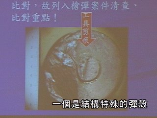 臺(tái)灣“中國(guó)時(shí)報(bào)”今日頭版的位置報(bào)道說,項(xiàng)目人員是在11月底,根據(jù)刑事局提供的分析資料、借訊在押的擁槍嫌犯,并循線查出臺(tái)南的一個(gè)槍械制造集團(tuán)所制造販?zhǔn)鄣淖訌棧晚?xiàng)目人員在“319槍擊案”現(xiàn)場(chǎng)尋獲的2顆彈殼完全相同,因而前往緝捕,一舉捕獲5名嫌犯,主嫌坦承,“319槍擊案”現(xiàn)場(chǎng)發(fā)現(xiàn)的彈殼是他們所制造販?zhǔn)鄣模S后并帶警方起出制造工具。