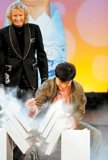 《環(huán)游》宣傳德國(guó)行 成龍單臂碎石驚觀眾(圖)